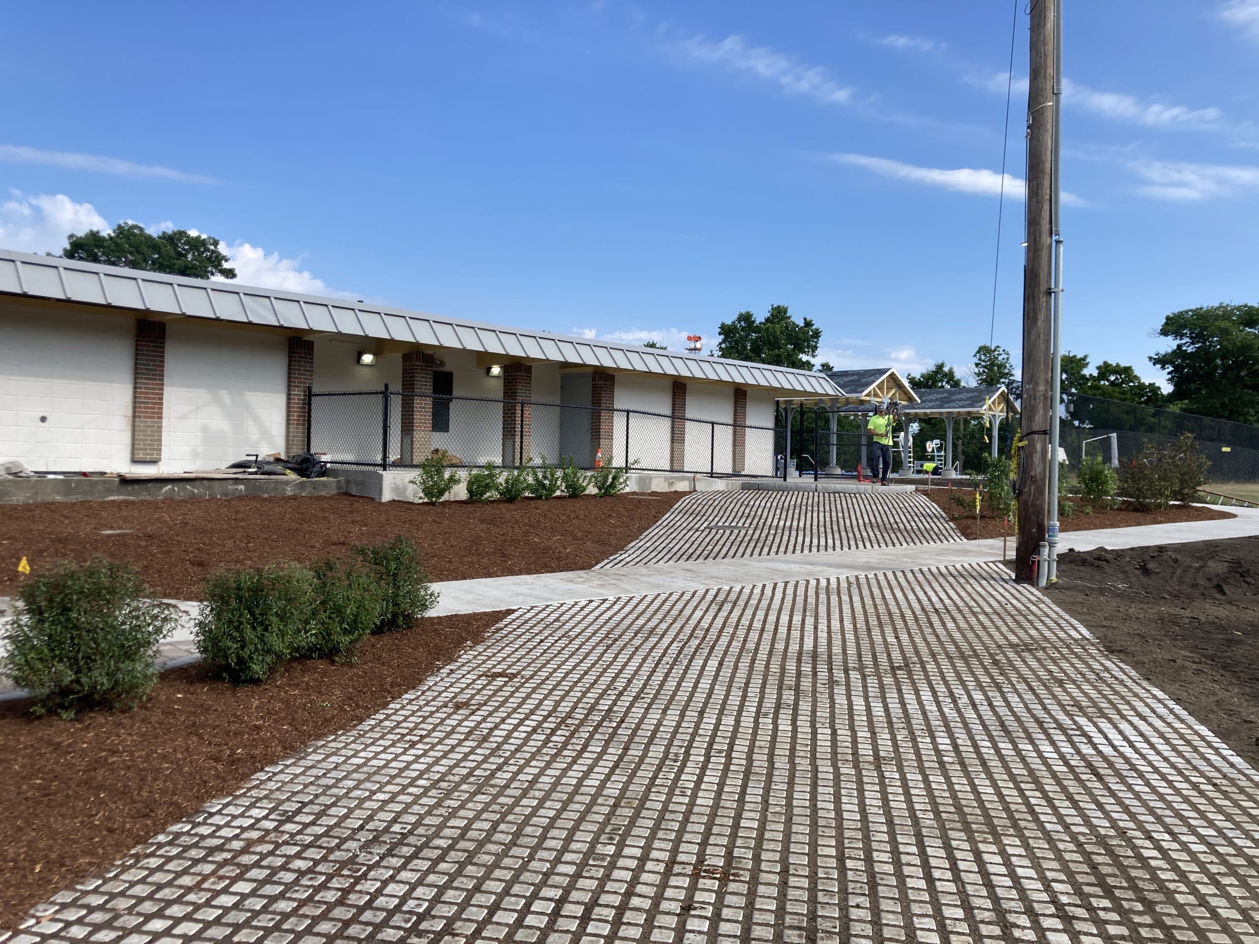 This project required the replacement of the existing pool and pool equipment with new materials and equipment. The structure of the bathhouse was maintained; however, it was completely gutted for new accessible restrooms and showers including fixtures, plumbing, ventilation, and electrical work included. Additionally, the roof was replaced and miscellaneous site improvements at the front entry for accessibility were included.