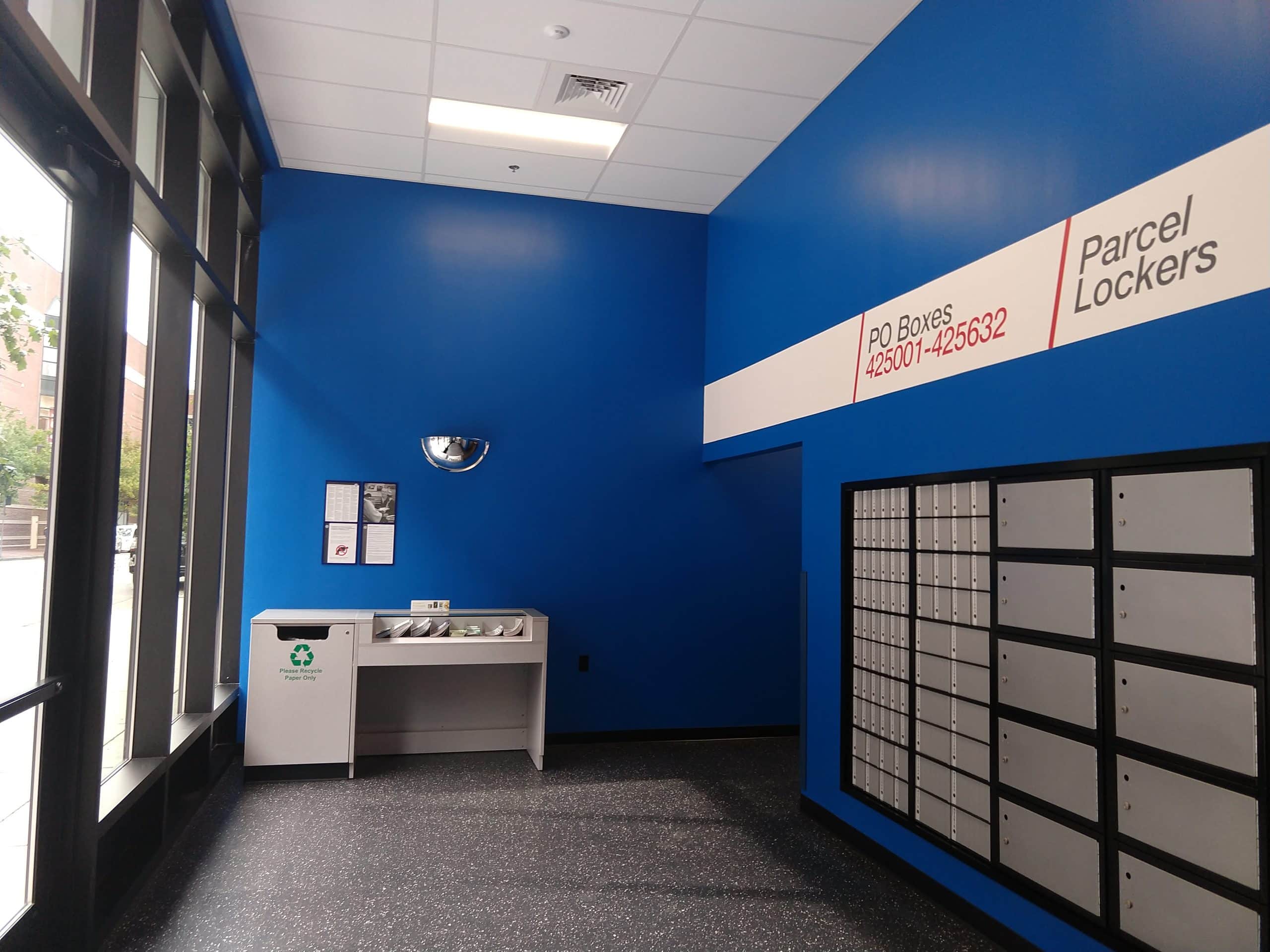 The USPS leased a new location in Kenmore Square. MMT designed a tenant fit-out for the USPS at a newly developed location. The layout, finishes, mechanical, and electrical systems were designed to meet the USPS Facility Planning Concept.