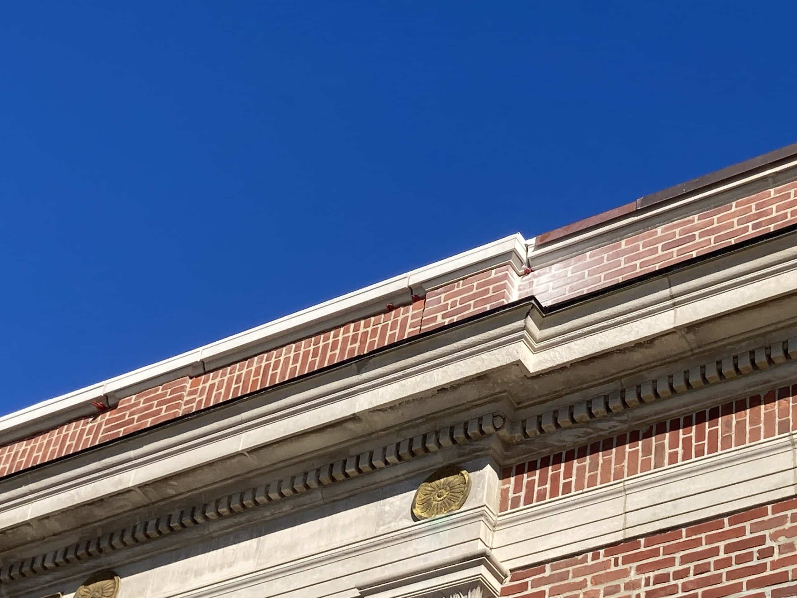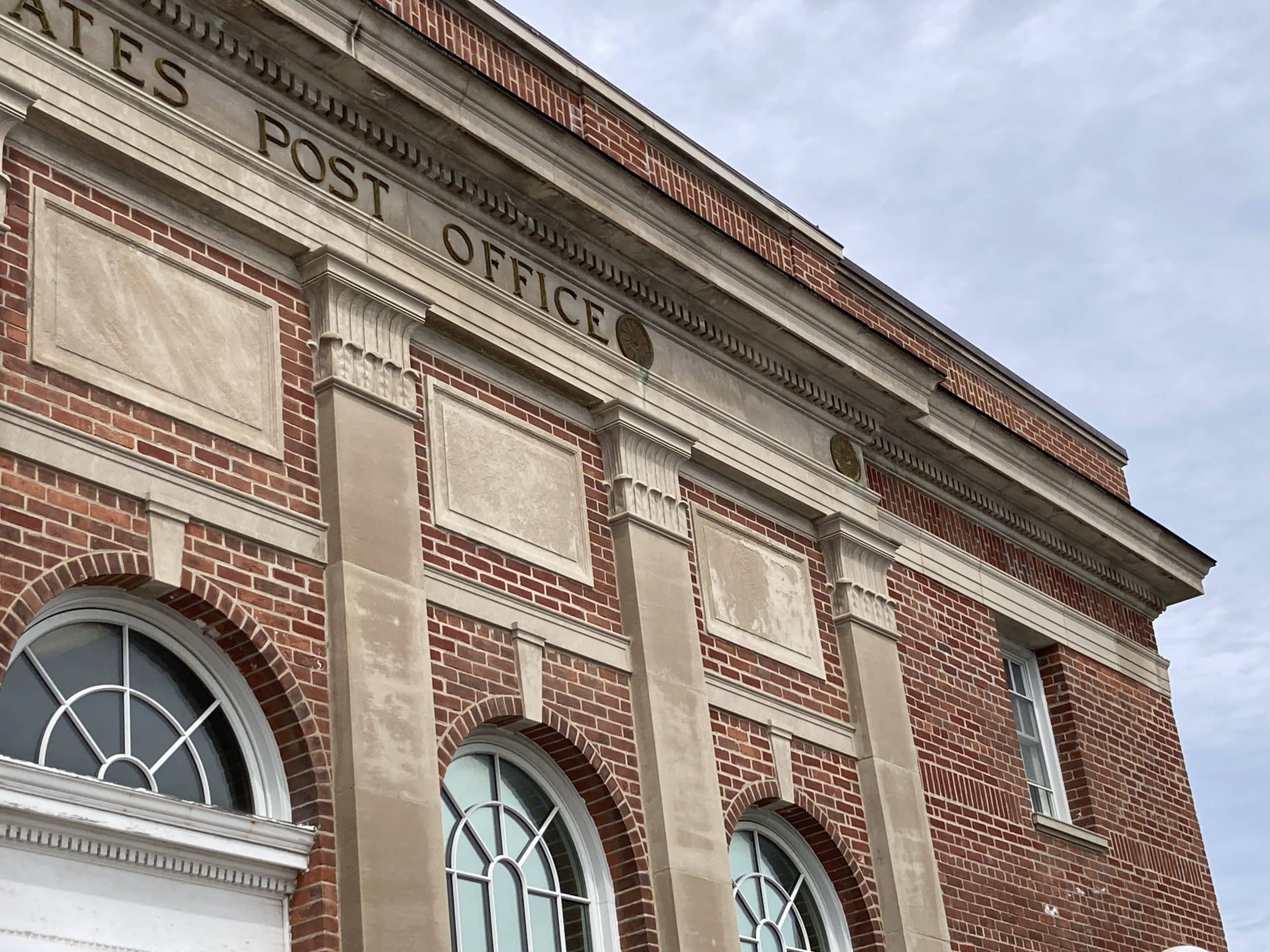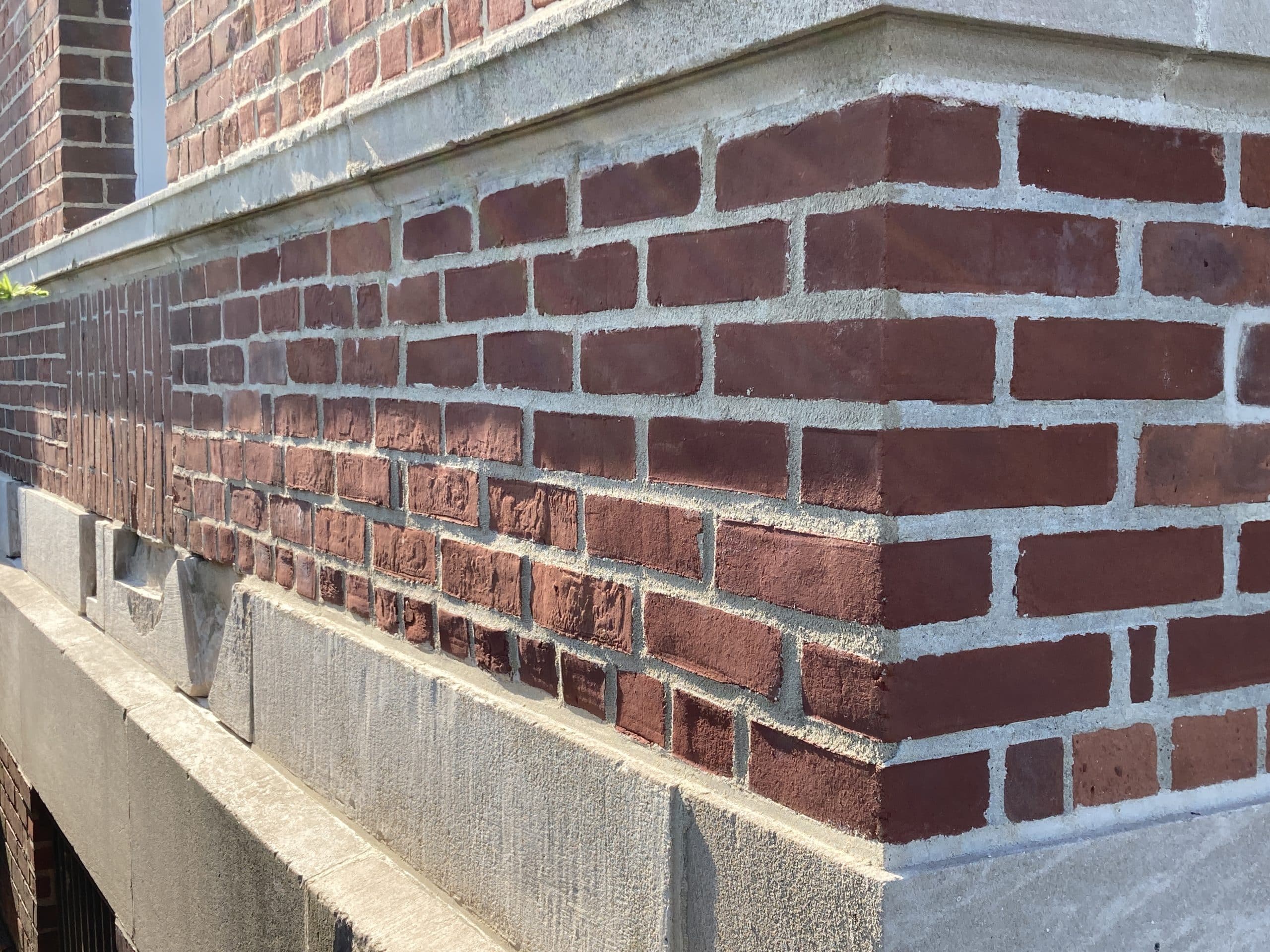 The exterior envelope renovation project at the Narragansett Post Office underwent a masonry project, including repointing and masonry repair.