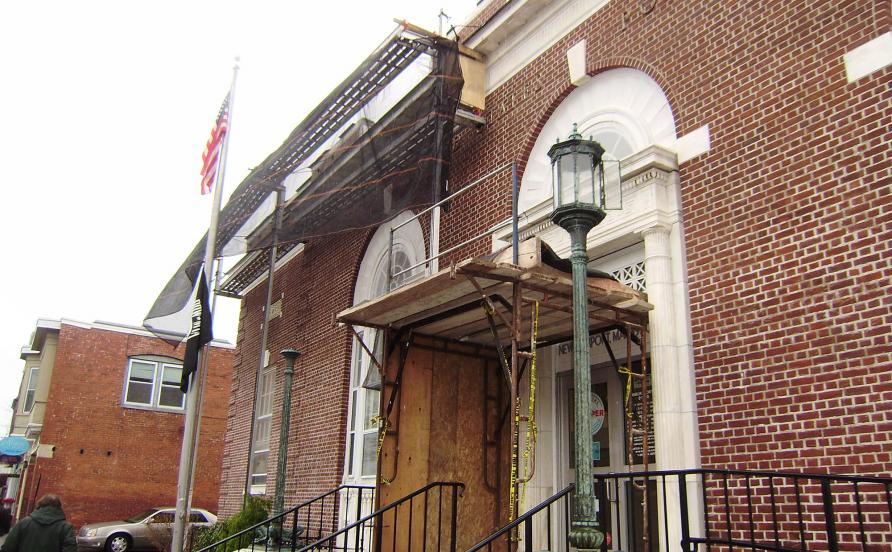 This Historic 1930s Post Office underwent a complete masonry façade renovation, including repointing, marble repair, and repair of damaged historic interior plaster finishes. The flat roofs and rain leaders were replaced and the slate roof was repaired.