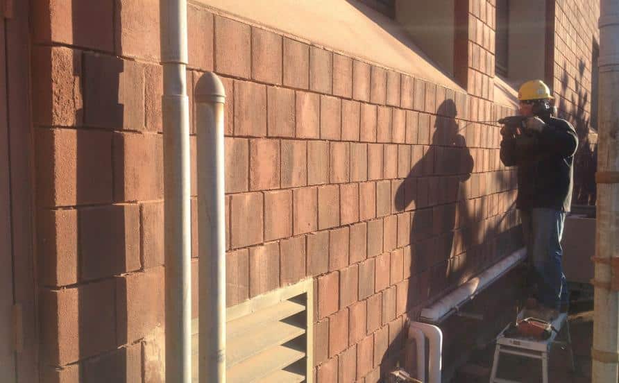 PLYMOUTH MPO, MASONRY FEDERAL GOVERNMENT This failing façade was repinned to the backup wall and restored to stop its deterioration.