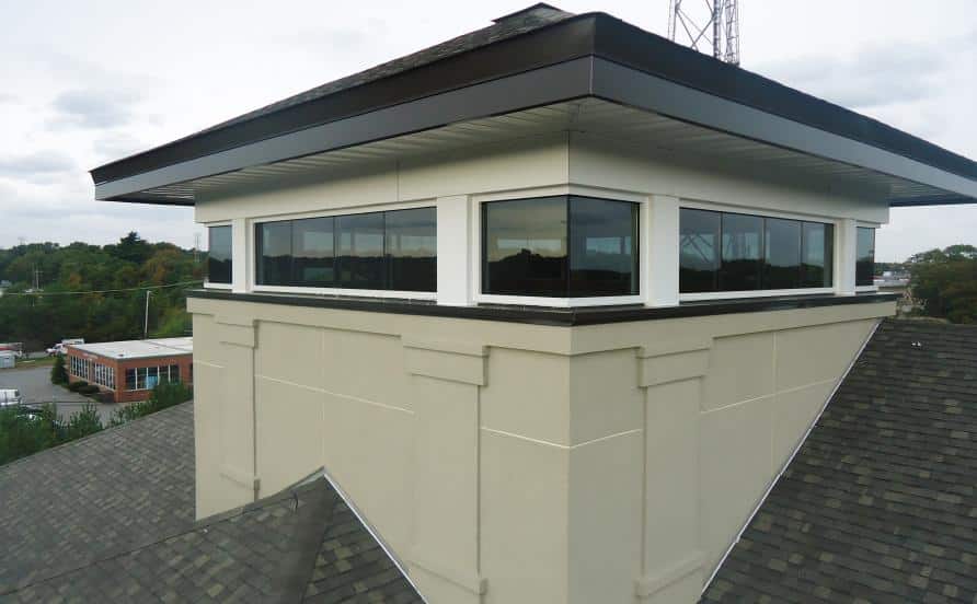 This project replaced a failing standing seam roof with fiberglass shingles, replaced the leaking cupola windows, and addressed long standing water penetration issues on the facade. A snow belt and fence were introduced to address falling snow issues at the facility.